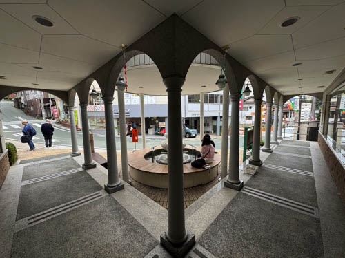 ビーナス像が中央に立つ足湯で、誰でも無料で利用することができます。