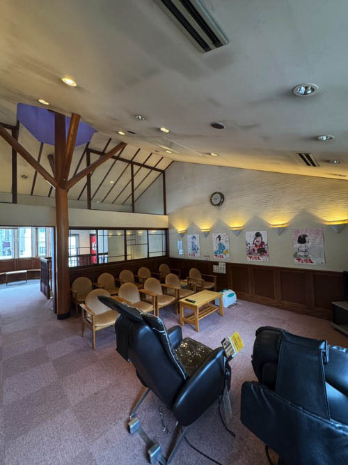 階段の上り下りが困難な方には身障者用の脱衣場が1階にございます。 身障者用の脱衣場について - 当館は内湯のみですが、優に10人は浸かれる広さで、解放感ある造りです。